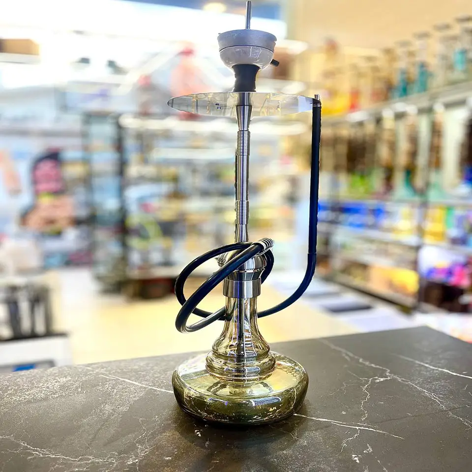 - تنگ (شیشه): شیشه کریستالی شفاف یا رنگی (بسته به موجودی)، با طراحی زیبا که نور را به طور خیرهکنندهای منعکس میکند و جلوهای خاص به قلیان میبخشد.