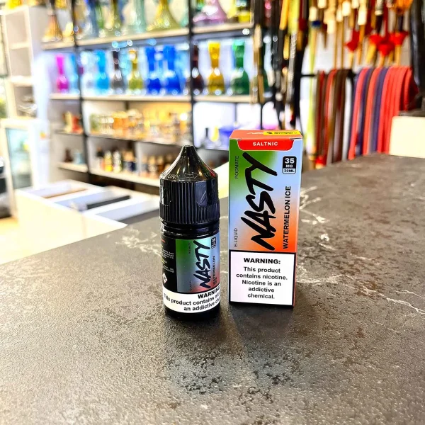 سالت نیکوتین هندونه یخ نستی (Nasty Watermelon Ice Salts) طعمی خنک و تابستانی از هندوانهٔ شیرینِ آبدار با کولینگِ متعادل ارائه می‌دهد؛ گلوگاه ملایم و نیکوتینِ جذب‌سریع دارد و برای پادسیستم‌های MTL کم‌وات طراحی شده است. فرمول 50/50 VG/PG برای طعم شفاف و ماندگاری بهتر کارتریج، بطری 30ml با نیکوتین 35mg. (برای دستگاه‌های ساب‌اهم مناسب نیست.)